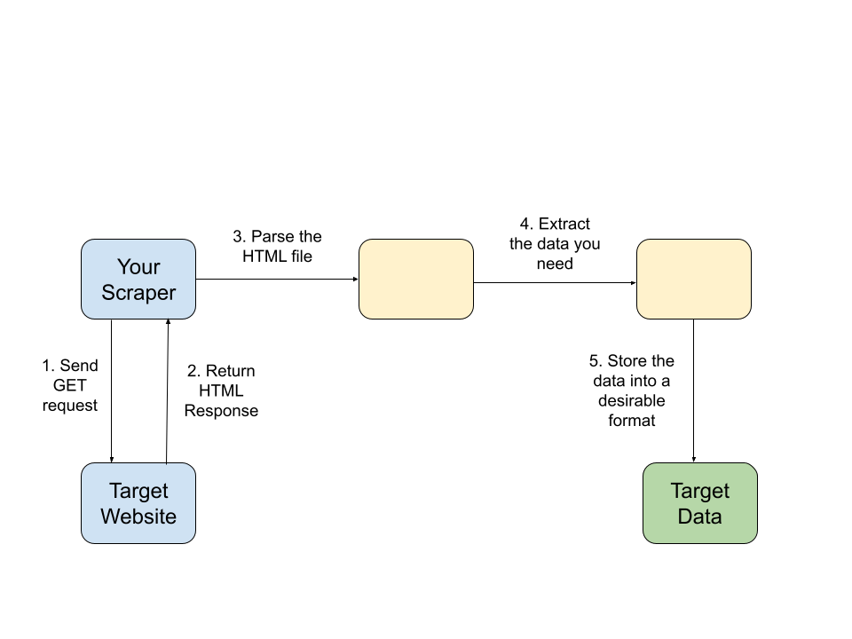 Conventional web scraping includes retrieving data from the internet and storing it in an analysis-friendly format. Broadly, the process starts with sending an HTTP request to the server of the website you’re scraping. Once the server returns the HTML of the page, the next step is to parse the returned HTML and extract the data you need. Then you can use the scraped data for various purposes, including training ML models or data analysis: