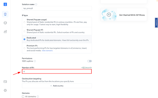 Specific domains or use ‘All domains’ for one IP to target websites using the same IP.
