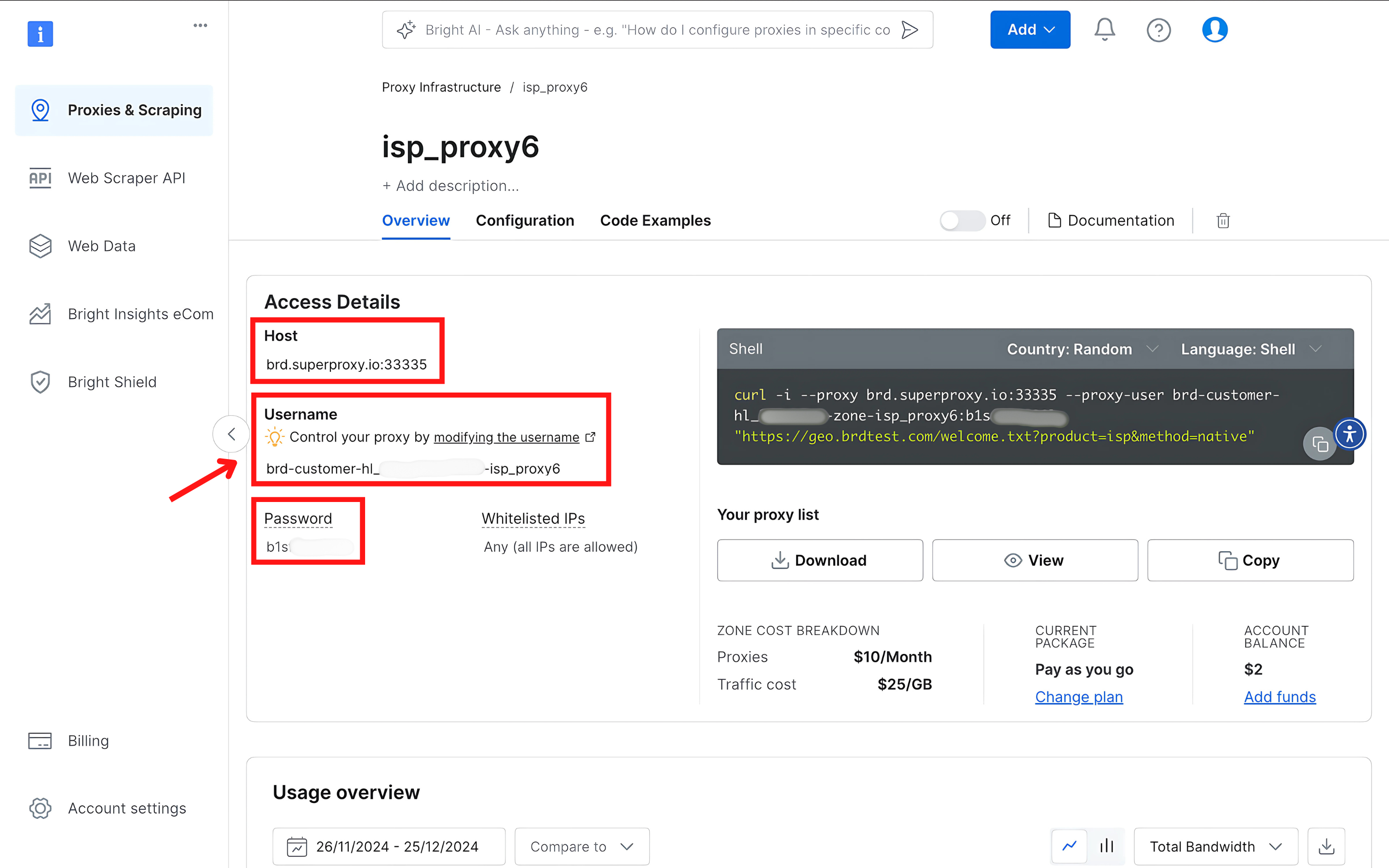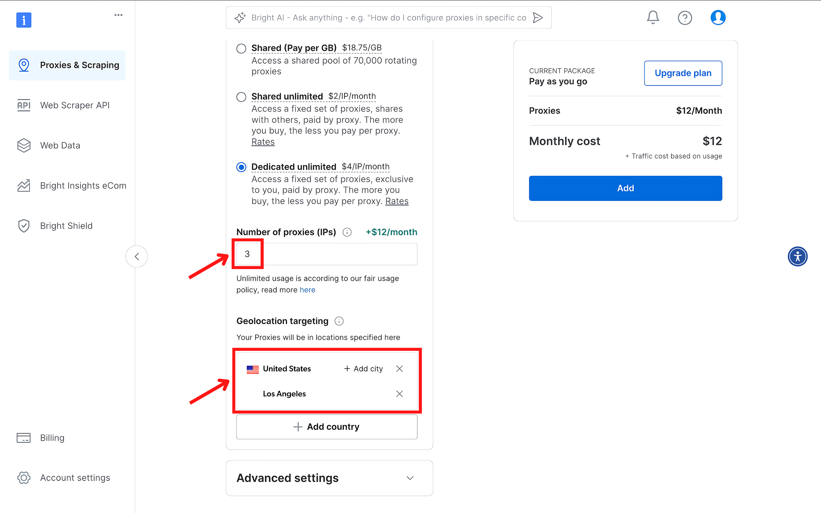 - Session Control: Bright Data allows session customization. Configure session persistence to maintain the same IP or rotate IPs as needed for your tasks.