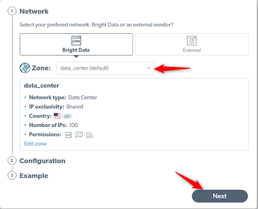 Navigate to the “Proxy & Scraping Infrastructure” section and Add a new designated Zone for your proxy usage.