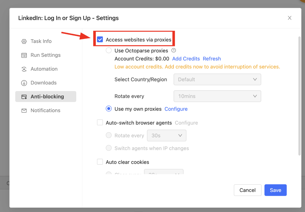 Octoparse proxy integration