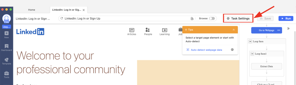 - Sign up for a free Octoparse account.