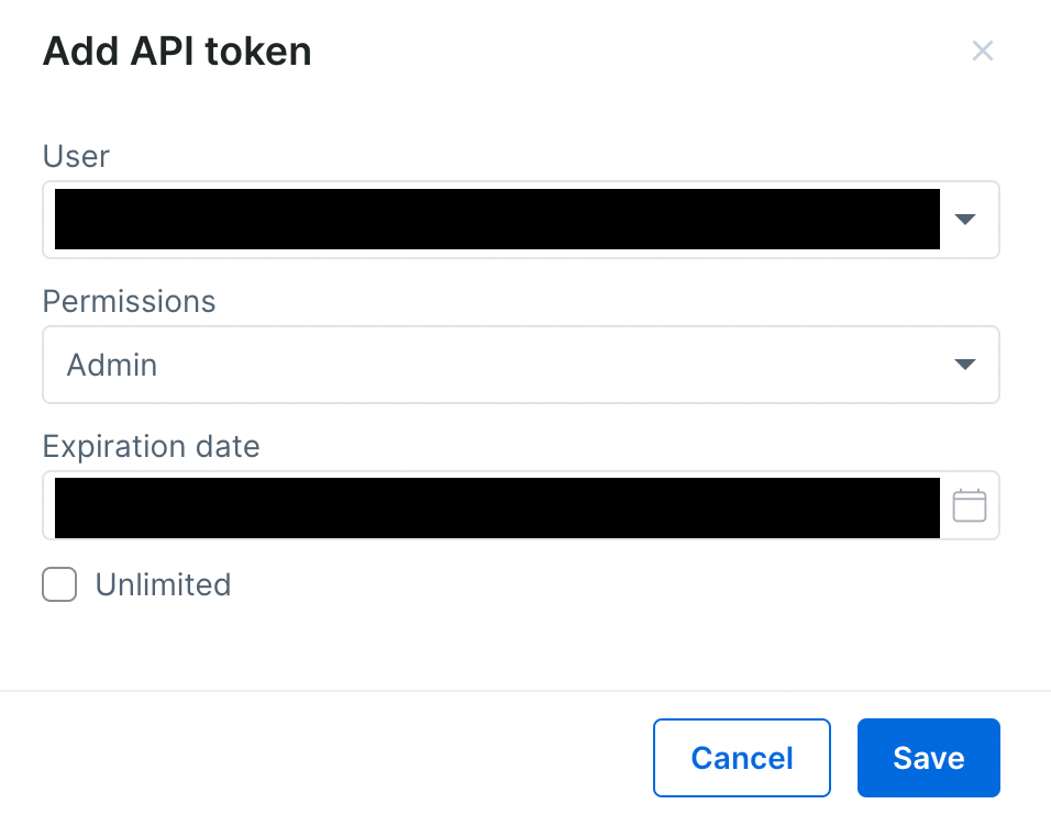 Click on the ‘Add token’ button in the API Tokens session, and then select ‘Admin’ permissions and leave the ‘Expiration date’ field untouched.