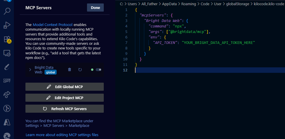 How to Connect Kilo Code to Bright Data’s Web MCP in Visual Studio Code