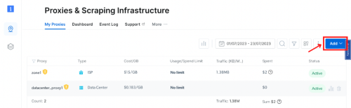In the Bright Data’s dashboard, navigate to the “Proxy & Scraping Infrastructure” section and Add a new designated Zone for your proxy usage.